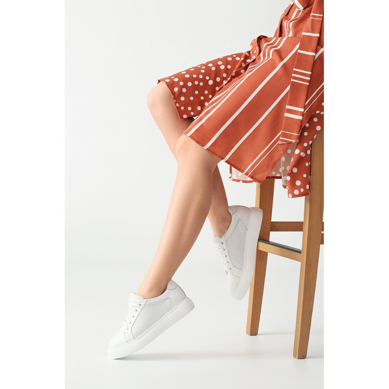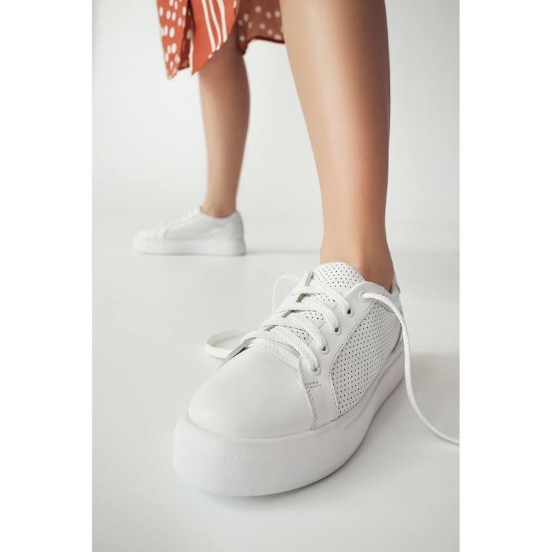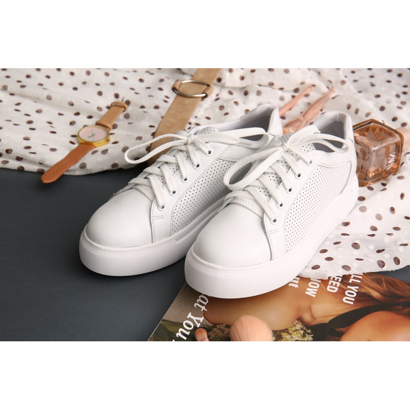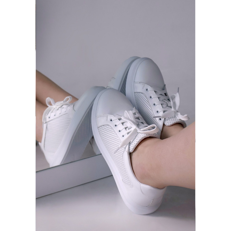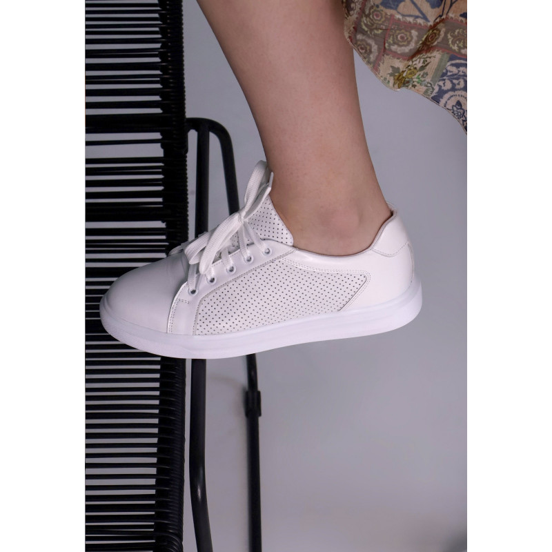 Обувная перфорация набирает все большую популярность. Такая обувь хорошо проветривается, отлично подходит для теплой погоды. Даже при длительной носке Вы всегда будете чувствовать себя комфортно. Данная модель сшита из натуральной кожи классического белого цвета. Отличный вариант для прогулок, встреч и повседневной жизни.
