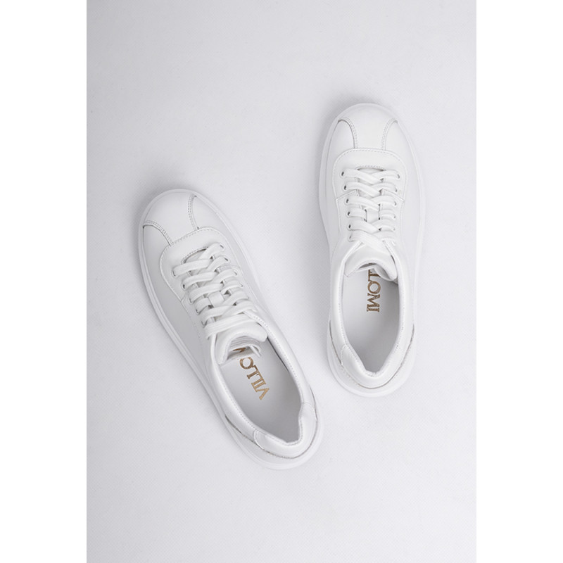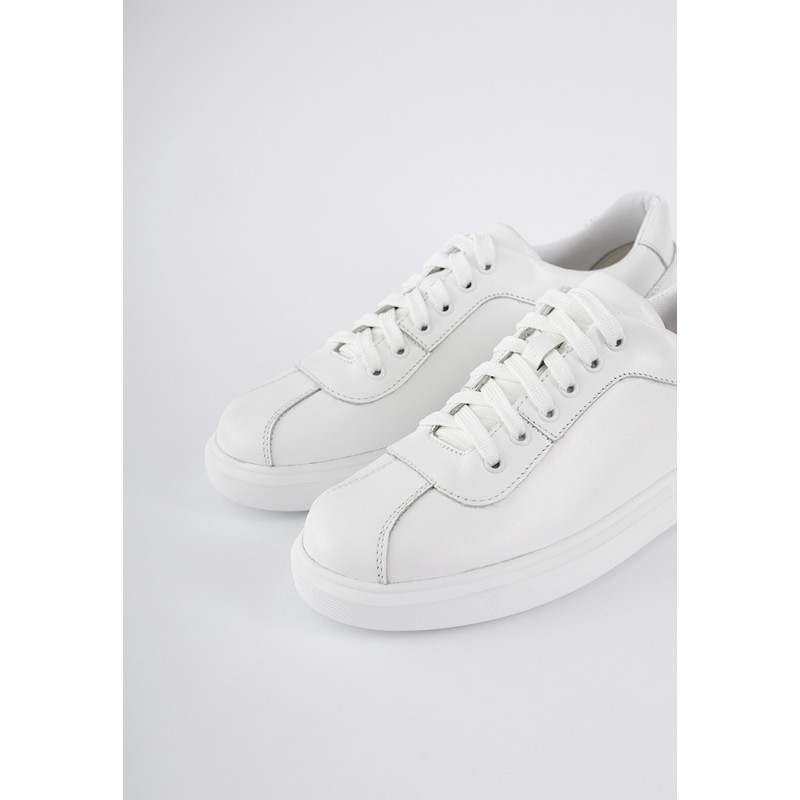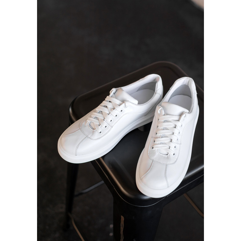Отличный базовый вариант - короткие женские кеды из натуральной кожи белого цвета. Удобная полномерная колодка, хорошо подходит для ножек средней и большой полноты. Внутри мягкая кожаная стелька для большего комфорта.