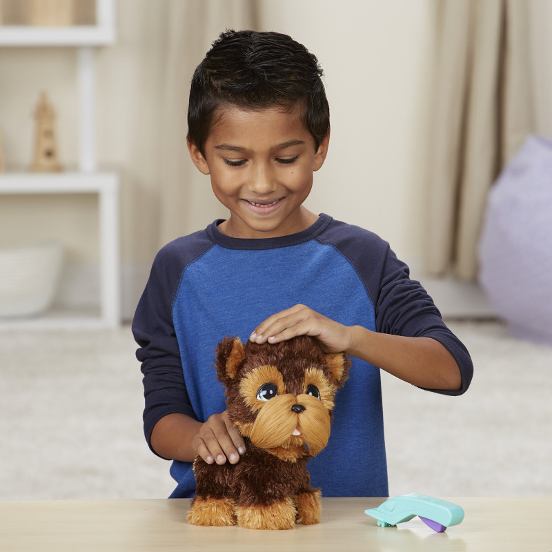 В комплекте со щенком есть машинка для стрижки, имитирующая работу настоящего инструмента. Машинка издает забавные звуки гудения и вибрирует.